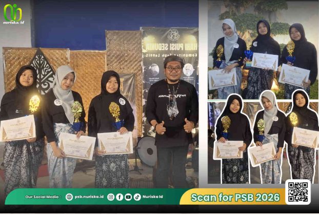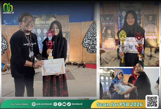 SUMENEP (nuriska.ID) – Tiga santri Madrasah Aliyah (MA) Nurul Islam menorehkan prestasi membanggakan dalam ajang lomba baca puisi tingkat se-Madura yang digelar Komunitas Sauh Langit dalam rangka memperingati Hari Puisi Sedunia. Ketiga santri tersebut adalah Roihanatut Thoyyibah yang meraih Juara Harapan I, Bilqies Aulia Putri sebagai Juara Harapan II, serta Aulidia Shifa Irtiah sebagai Juara […]